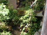 小山さんとはある催しで出会い、珍しい竹紙をわけていただいたのがご縁で、今夏の訪問を約束していた。勘六山の仕事場は、赤松と竹林がうっそうと茂る小高い山の上。まず目に入るのは赤松の根元に置かれている10数個の青いポリバケツ群。水の中に浸けられた竹片がぎっしりとつまっている。蓋をとると竹が出す灰汁の強い匂いが立ち上るが、有機的な匂いなので慣れることができそうだ。
