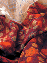 パート3『NUNO・布展〜若きクリエーターたちの挑戦』では、イタリア、ロシア、イスラエル、インドなどの国々からの新鮮で刺激的な発想によるテキスタイルが揃いました。加速するとジャケットの正面が光を発し、減速すると背面が光る、左折時には左の袖、右折時には右の袖が光るという、ライダージャケットなど、無限に広がるテキスタイルの可能性が感じられる展示もあって、見逃せません。