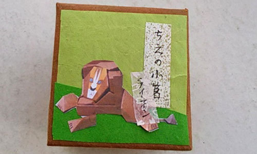 田中さんにお目にかかってから10年、今年で93歳になられました。田中さん考案の6cm四方の立方体を頭の中で切り、そのかたちをボール紙と千代紙で作る『ちえの小筥』は、根強いファンに励まされ、今でも作り続けていらっしゃいます。