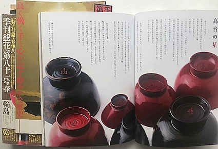 角さんの作品と輪島ならではの職人仕事を取材したいと思っていた私に、彼は提案した。今、心にかかっている「アジアの漆」と「銀花」の特集を結び付けられないか。タイ、ブータン、ミャンマーの三ヶ国を巡り、帰国してほどない人は、暮しに深く根付いた漆器について思うところ多々、という風であった。