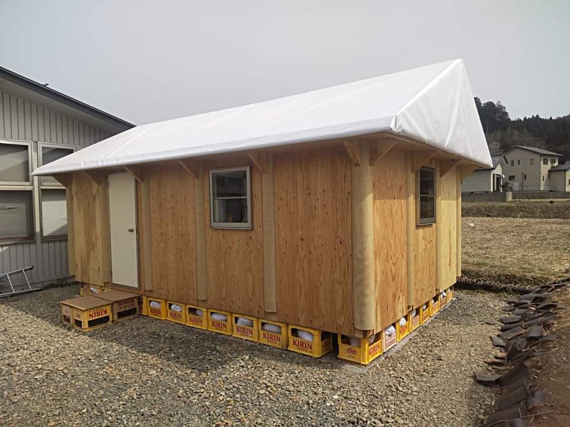 京都で話をしていた輪島キリモトで建てた紙管を使った作業場を見に桐本さんの工場へ。桐本さんがおられ見せていただきました。13時間で建てることができ(水道、電気等は後)、紙管や木の表面は防水加工、接地面はシリコン加工がしてあるので水に強く、7~8年は使えるとのこと。別の場所にお風呂も作ったそうで、テント内に湯船があり、パネルで温度調整もできるようです。
